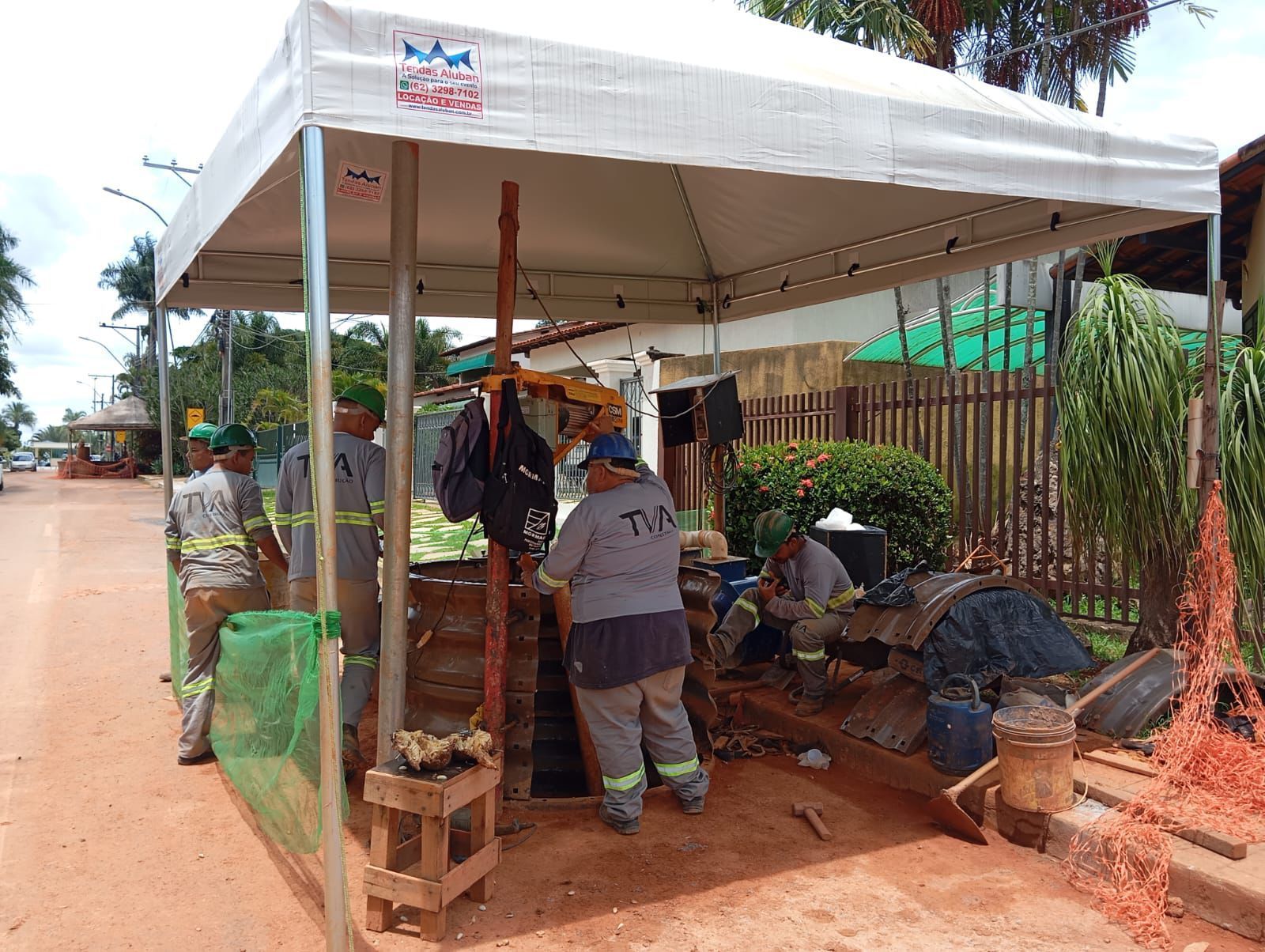 Naquele trecho da obra a maior parte do serviço está sendo realizada por meio de perfuração subterrânea do canal de drenagem, o que dificulta a visualização dos trabalhadores.